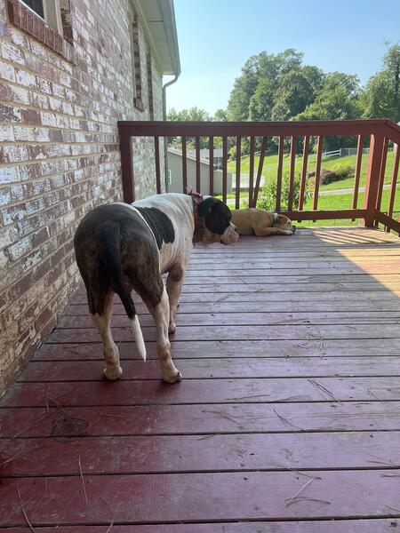 message bcartermd about this ad Drax, 6 yr old, Male, Brindle and White, 110 lbs, Vet maintained (up to date on shots no papers Drax was a house dog for the first three years of his life. He lived inside with another American Bulldog (female my wife and very young daughter. He is great around family and kids. He wants to be a lap dog and is a gentle protector. We relocated him to our backyard into a large kennel once we decided to start breeding. He is a great breeder. He has sired two litters of pups in the past two years; 12 pups (2022) and 15 pups (2023 All pups have gone to good homes. We are rehoming because we started breeding American Bullies about three years ago. Drax does not get along well with our other male (American Bully For the past year we have had to keep both dogs separated. We had altercations between them this past year when our females were in heat. Moving forward with breeding bullies only, we would like to find Drax a new home. He has a few good years left in him and will serve the right family well. If youre looking to breed he is your guy or if you just want someone to watch over your family he is your guy. If interested please let me know you can see pics of Drax and our other American on IG at "drax_lucy.ab You can see some of what he has produced in the attached photos. You can also text me at 202.730.6363. Please text before calling. Thank you message bcartermd about this ad |