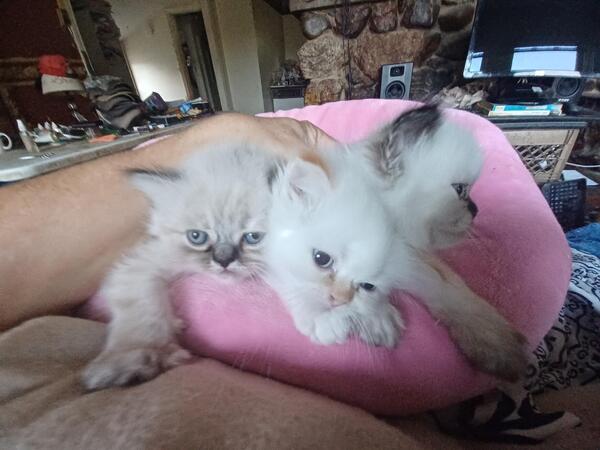 message sunofwolf about this ad Himalayan-Persian. Big blue eye's First shots, very warm Persian Fur coat. Nutri vet Colostrum Pedialyte Solution Fed, CFA certified, Dam Velencia, Must be 56 days old to leave mom. Hospital Health Certificate for Kittens. Pick one out today. Rare White flame point Male with reddish ears and tail-teenager. Double fur and huge head and paws. CFA certified Himalayan. tested FLV/FIV, negative. First shot and dewormed litter box trained. Softest fur in the world and they keep you warm at night and purr. Very low allergy cats! Call for email pics. Videos too! Best to text/call me at 207-588-7545. Hobbly email Does not work well. Maine vendor V2025046 |
