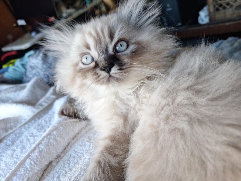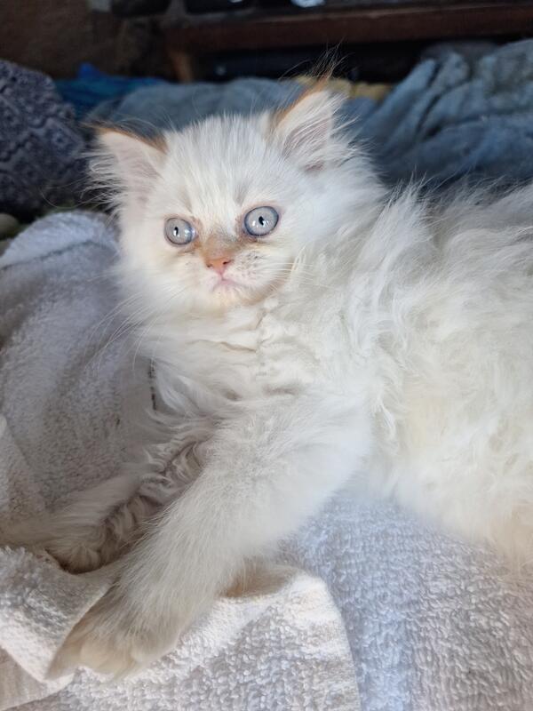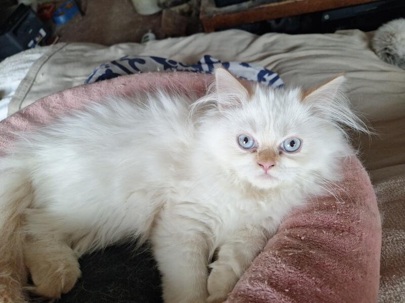 message sunofwolf about this ad Himalayan-Persian. Just One blue point Prince kitten Boy available. Big blue eye's First shots, very warm Persian Fur coat. Nutri vet Colostrum Pedialyte Solution Fed, CFA certified, Dam Velencia, Must be 56 days old to leave mom. Hospital Health Certificate for Kittens. Pick one out today. Rare White flame point Male with reddish ears and tail-teenager. Double fur and huge head and paws. CFA certified Himalayan. tested FLV/FIV, negative. First shot and dewormed litter box trained. Softest fur in the world and they keep you warm at night and purr. Very low allergy cats! Call for email pics. Videos too! Best to text/call me at 207-588-7545. Hobbly email Does not work well. Maine vendor V2025046 |