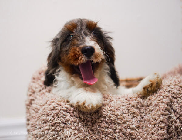 message chosencompaniondoods about this ad READY TO GO HOME Delivery available for an extra fee Half way meet up available for free Chosen Companion Doodles is a reputable Goldendoodle, Poodle and Cockapoo Breeder. Our goal is to produce a cuddly companion with an even temperament. Our dogs have the potential to be your adventure buddy or have a job such a service, emotional support or therapy work. We are currently accepting a $200 deposit for our F1B Cockapoos. This is a rainbow litter with a variety of coat colours. We have a: Black with White Boy (SOLD) Apricot Parti Boy (SOLD) Apricot Parti Girl with half a mustache (SOLD) Tweed Merle Boy (SOLD) Red with White Girl (SOLD) Blue Merle Parti Phantom Boy Pricing starts at $1,000 We expect this litter to mature between 10-15lbs and genetically verified to have non-shedding coat types. Our cockapoos have amazing temperaments, training ability and good conformation. Mom and dad, are both sweet, affectionate, gentle, trained, and are very social dogs. Raised with the BAB curriculum Fully health tested parents (Genetic and OFAs) Up to date on vaccinations and deworming Vet checked Socialized Started potty training on a alfalfa grass pellets Started crate training Raised by Chosen Companion Doodles in a clean in-home environment Raised on a balanced human grade raw diet and FROMM kibble 1 year health guarantee Lifetime breeder support Sent home with a blanket smelling like mom and siblings, etc. If you are interested in welcoming one of our truly amazing pups to your family we ask that you send us a message via kijiji, our email or Instagram. www.chosencompaniondoodles.com Instagram: Chosencompaniondoodles Tik Tok: Chosencompaniondoodles message chosencompaniondoods about this ad |