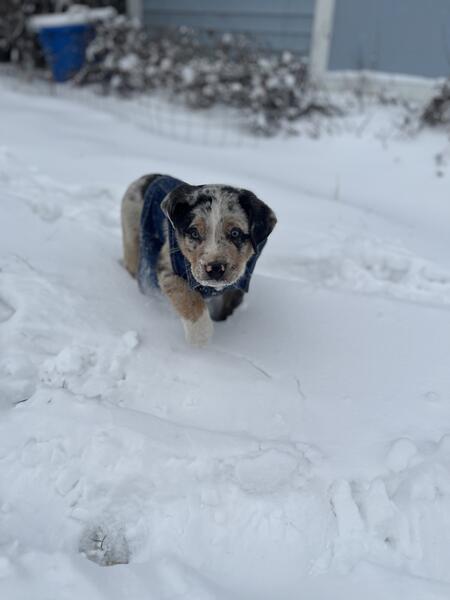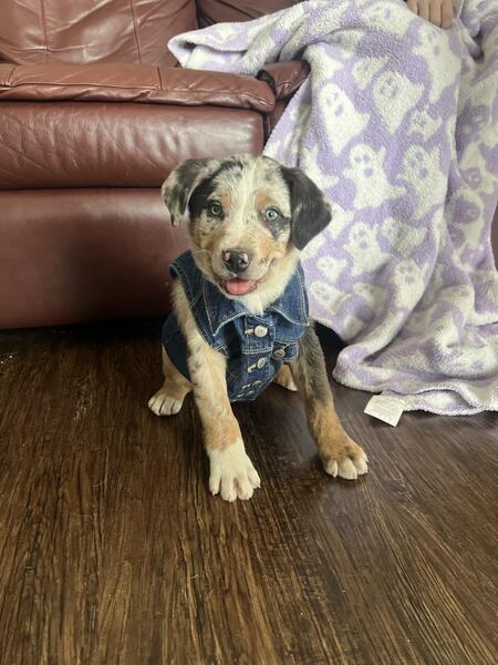 message cscrn3912 about this ad I have a 13-14 week old Hangin Tree Cow Dog, hes 1/4 Australian Shepherd, 1/4 Australian Kelpie, 1/4 Border Collie, 1/4 Catahoula Leopard Dog. Hes sweet, but hes just not working out in our apartment. Hes a herding dog so he needs a yard and to be able to be outside often. We have 2 toddlers I dont really have the time he needs. He comes with a water bowl, food bowl, toys, and dog food. |