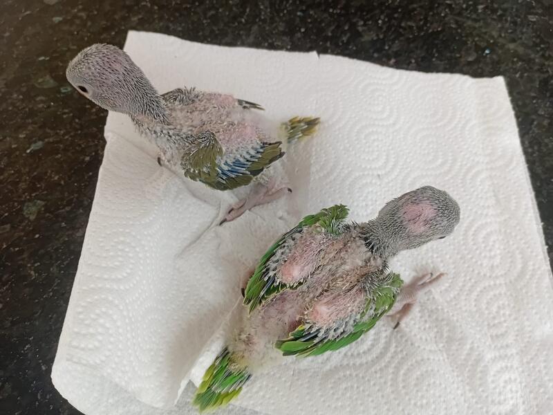 2 Pichones de indian ringneck, 1 verde onlive, 1 verde.