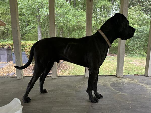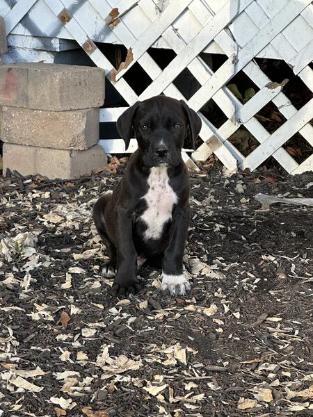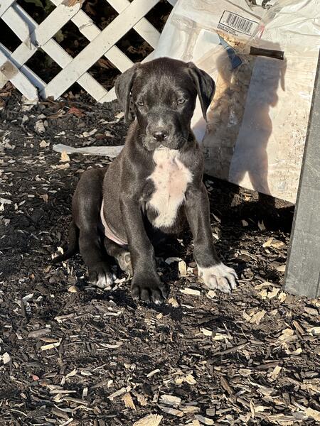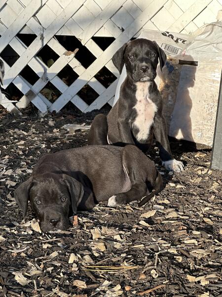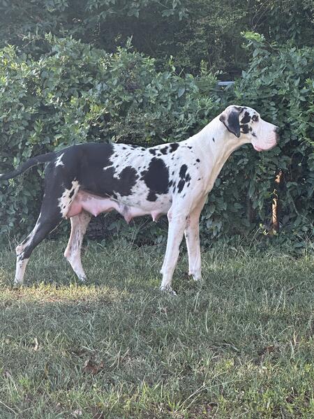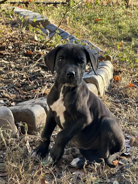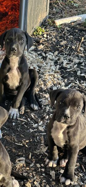 message paintedacres about this ad DOB September 13th RTG November 8th Mom is an AKC euro Dane and dad is mastiff! Both parents are here on site, Lawrenceville, GA. Transport can be arranged. They are mismarked mantle (black with white markings) natural ears and tails with declaws removed. expected to be over 100 pounds and 30 at the shoulder or more. Pricing is $800 UTD on shots, worming, vet checked with records, puppy pack and embark discount card. Free airport delivery and health certificate can be obtained for airlines for an additional cost. Parents are genetically health tested and clear. Kennel training and potty training will be started. Socialized with children ages 5-10 as well as dogs ranging in size from 7-150lbs. Loud noise exposure (sirens, horns, fireworks) THEY ARE ALL MALES |