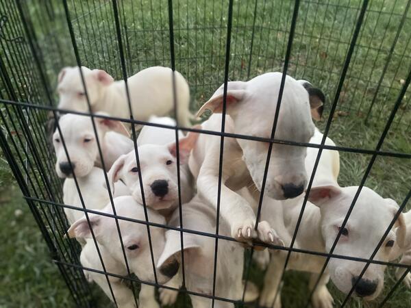 message dogojay about this ad birthday 11/14/24 *Exceptional Dogo Argentino Puppies Ready for Forever Homes Seven, seven, three ,six, seven, nine, ten, twenty Discover the pinnacle of canine companionship with our stunning Dogo Argentino puppies, hailing from the prestigious DoGo Den Mastiff lineage! Each of these majestic pups embodies the strength, courage, and loyalty that the breed is renowned for, making them the ultimate addition to any loving family or individual seeking a protective and affectionate friend. Only 7 remaining - 3 beautiful girl and 4 robust boys, each with their own unique charm and personality. These puppies are not just pets; they are a testament to the revered hunting and guardian instincts of the Argentine Mastiff breed. For a limited time, were offering an extraordinary opportunity: 200 OFF the original price This exclusive offer is your chance to welcome one of these remarkable dogs into your life without straining your budget, but its only available for the next 2 weeks. Dont miss the beat - seize the moment to make one of these exceptional Dogo Argentinos a part of your familys rhythm. Contact us now to reserve your future loyal companion and experience the joy and adventure that only a Dogo Argentino can bring! message dogojay about this ad |