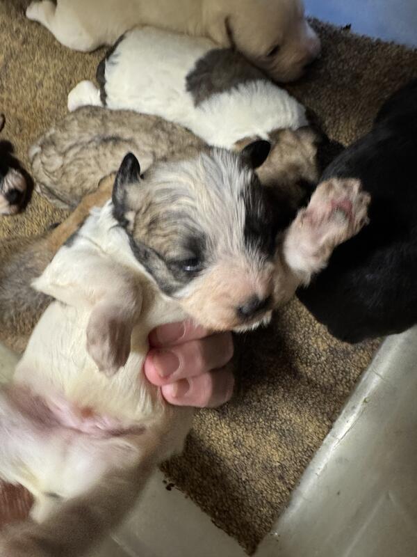 message ddbbee about this ad Schnoodles ready around November 2025. Black & white parti males, black males, 2 mixed color puppies that will lighten up. We have buff/ light cream females and a tannish female that will probably lighten up as well. Email to see what we still have available. Tails docked, dews removed, first puppy shot and up to date on wormings. We offer a 1-year life threatening health guarantee on our puppies. Ask for details. We have been raising Schnoodles for over 20 years. Many references available. |