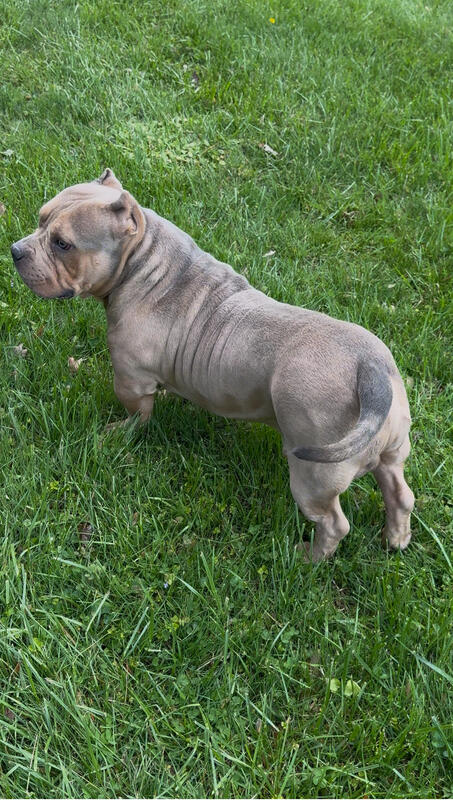 message nespence4 about this ad Ghost is a 2 year old blue fawn pocket American Bully. He is short, compact, muscular, and super solid, weighing around 70 pounds. Ghost is ABKC registered and is a proven producer. He can produce color and tri pups. Ghost is located in Owings Mills Maryland and in-person breedings will be arranged. All breedings will be conducted using AI method(AI included in stud fee Purchasing party is responsible for any progesterone test prior to breeding if desired. Message me for more info. |