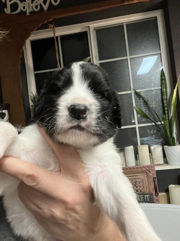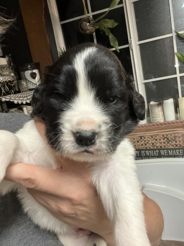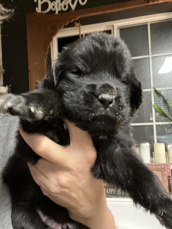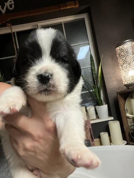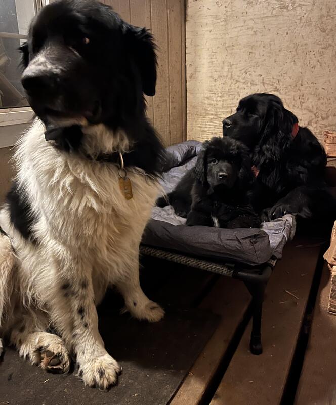 message believeacres20 about this ad New Pyrenees puppies- Newfoundland x Great Pyrenees Whelped 10/2/25, ready to go first week of December. Mother purebred Newfoundland. Father purebred Great Pyrenees working livestock guardian dog Seven males available. 2- black 5- black & white Mother & grandparent Newfoundlands on site. Best temperaments & sweetest dogs. An absolute farm favorite on our therapeutic homestead. These special pups can either be livestock guardian dogs- the GP lineage. (Even our Newfoundlands have chased cougars off our property Or, they could easily be wonderful family dogs as these breeds are known as Gentle Giants. (The black & white pups will look like their grandpa our Landseer Newfoundland. Black pups will look like their mom |