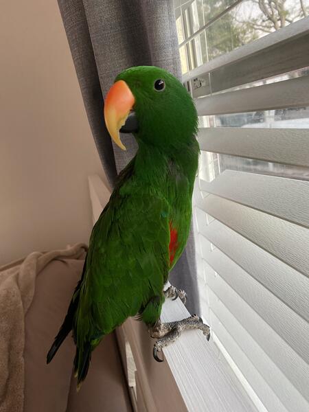 message animallover22 about this ad REX: Solomon Eclectus, 8YRS. Needs a loving home, someone who can spend time with him on the daily and take him out the cage. Hes plucked the feathers under his wings from stress, prefers women. Does not come with a cage, unfortunately. |