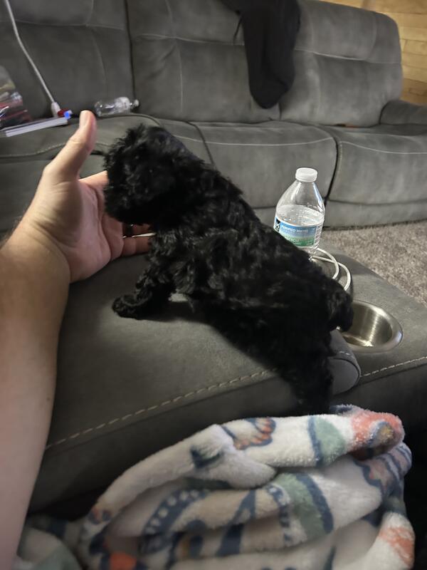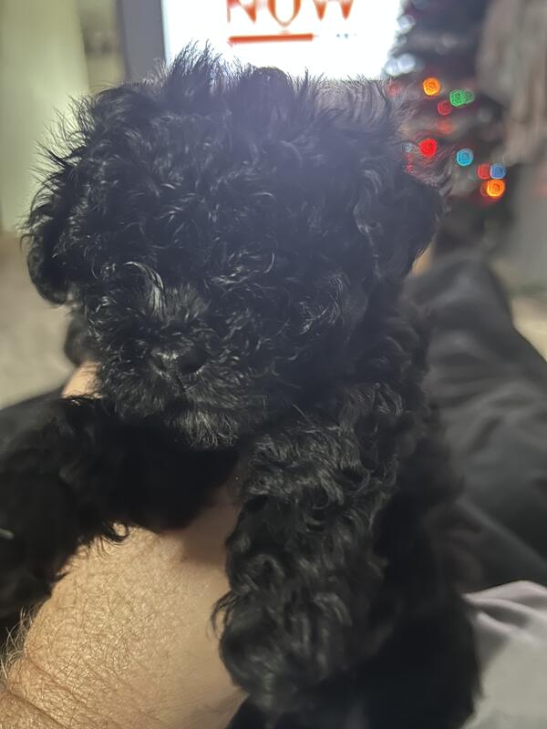 message rockerfeller about this ad I have a toy poodle puppy solid black female .If you are interested, you can message me on here or text me at 12693397024 she is 7 weeks old she had her dewclaws taken off, and also have had his tail docked. She has been dewormed . The mother is a miniature blue Merle and father is a 4 pound brown toy We live in Burlington Michigan she is very small less than 2lbs maybe get to be 5 lbs or less |