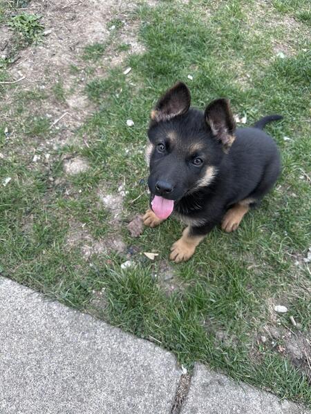 A have this german shepherd 2 month old he already knows how to sit and paw he likes to go play and has alot of energy