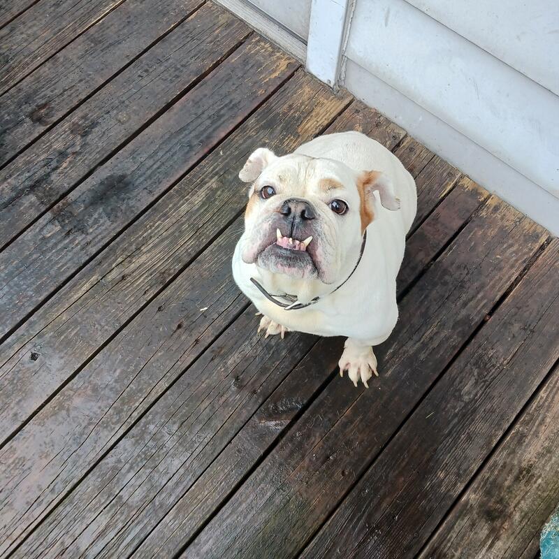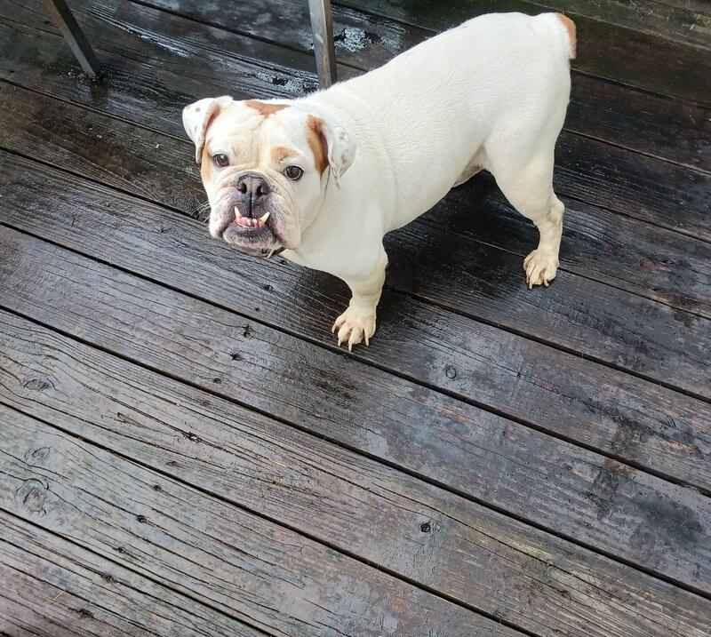 Old English Bulldog female 3 Years old. .Very friendly please text 3 three 0 four 28 - five 3 two 3. For pics