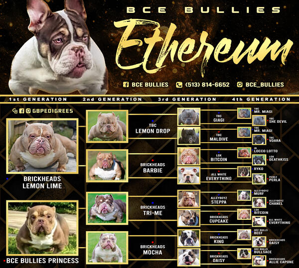 message lhank about this ad Ethereum is one week shy of 9 months and will be ready to work REAL SOON!Ethereum is something special he has the look,the health he is very functional and he has those hummer fronts.Ethereum also has the pedigree to out produce himself he is a Lemon Drop as I said he was bred to produce and then the cherry on top is he is a chocolate Tri triple carrier so he can produce all coolers (blue,chocolate,LilacWe are going to bless the bully game and do 5 breedings at 500 to get this boy going 150 locks you in the rest due at breeding time.we are located in Toledo Ohio we can do a Live breeding are we can ship seamen strait from vet at customer expense.You can also set up appointment if you would like to see him in person 513-814-6652.follow us at bce_bullies,on instagram |