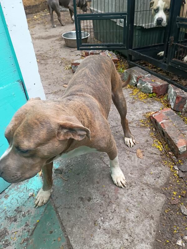 Looking to rehome a one-year-old blue and white brindle male who is very sweet and loves kids Contact 904-802-1212 for more info.