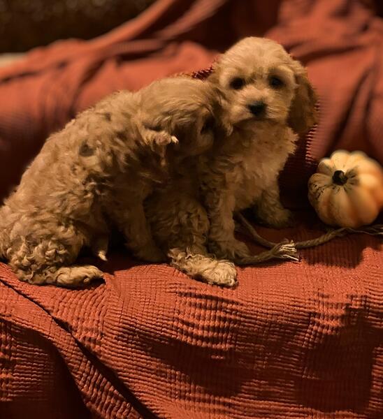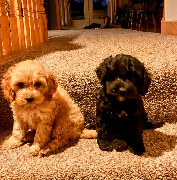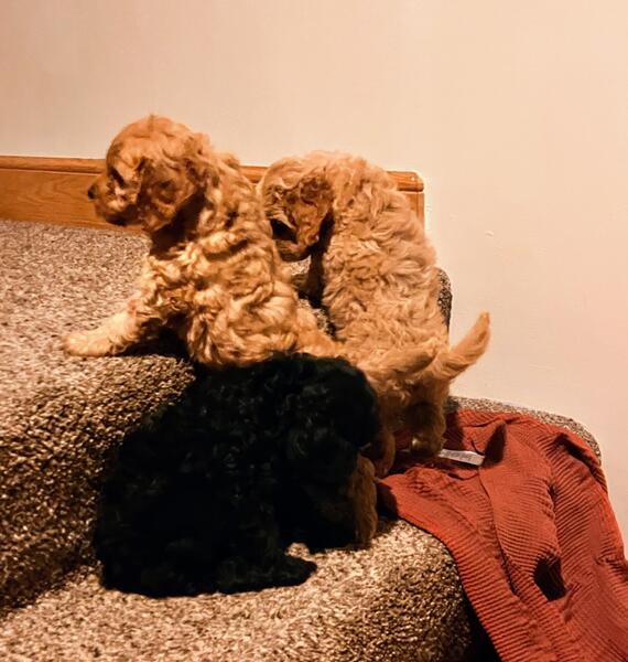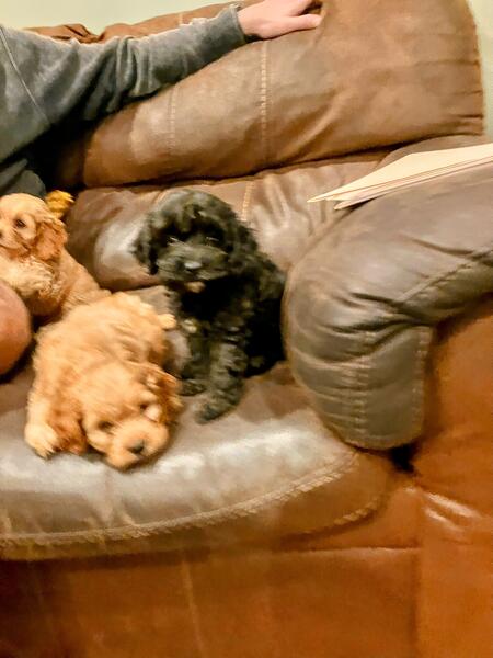 message mommy11 about this ad These adorable little guys are Rusty, Raven and Richie. Absolutely precious personalities. So sweet and lovable! They are 8 week old Toy mini size Cockapoos. Mom is a full bred Cockerspaniel and dad is a Toy size purebred Poodle. Both parents have very good temperaments. These guys will come to their new homes vet checked, microchipped, vaccinated and wormed. They also come with their puppy bags including their blanket, toy, starter food and paperwork/records/ 7 Day Sellers Health Guarantee. We encourage you to come on out and meet these cuties but do also offer ground and air delivery or Nanny Services. Feel free to reach out with any questions that you may have at 740-228-9812. Thank you for your interest in our little guys |