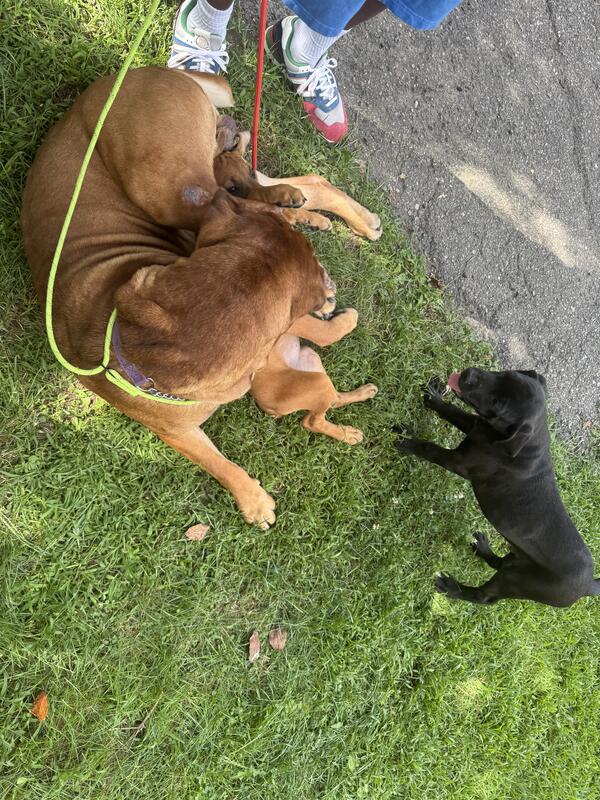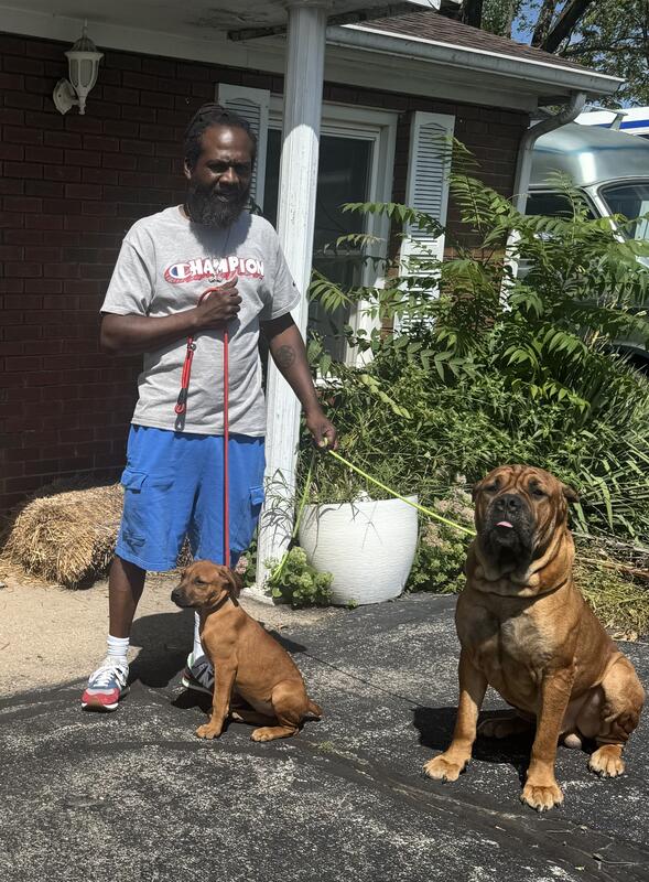 Mastiff hybrids male and female good with kids other dogs cats
