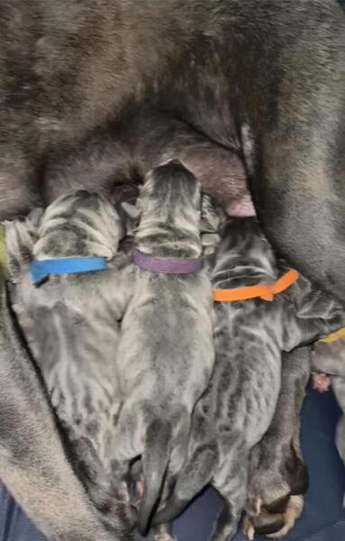 message dave31 about this ad Beautiful big blue and blue brindle puppies 5 females 5 males come pick your baby today . Big head dewormed and tails docked message for more info 3one0 5666643 |