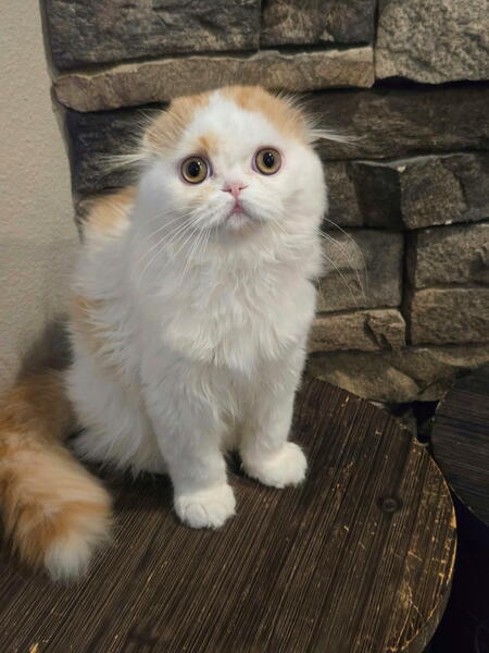 message foldsgalore about this ad Meet Dudley! Were so excited to introduce Dudley, one of our handsome boys. Born: June 8 Breed: Long-haired Scottish Fold Color: Red and white Dudley is truly the sweetest and smartest kitten a gentle soul who loves cuddles and has a calm, loving personality. Hes wonderful with kids and loves to be the center of attention (and affection He is TICA registered, and both of his parents have been DNA tested and cleared of all genetic health conditions. They are also FELV/FIV negative. Dudley is current on all vaccinations and deworming, and hes growing into such a handsome, affectionate little companion. If youd like to learn more about Dudley or our Scottish Fold & Straight kittens, feel free to message us we love talking about our kitties! |