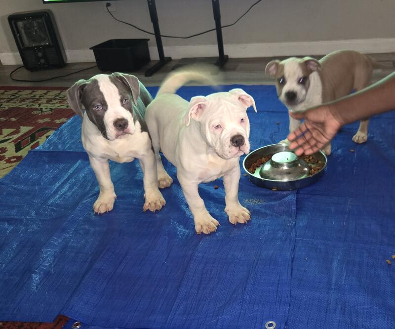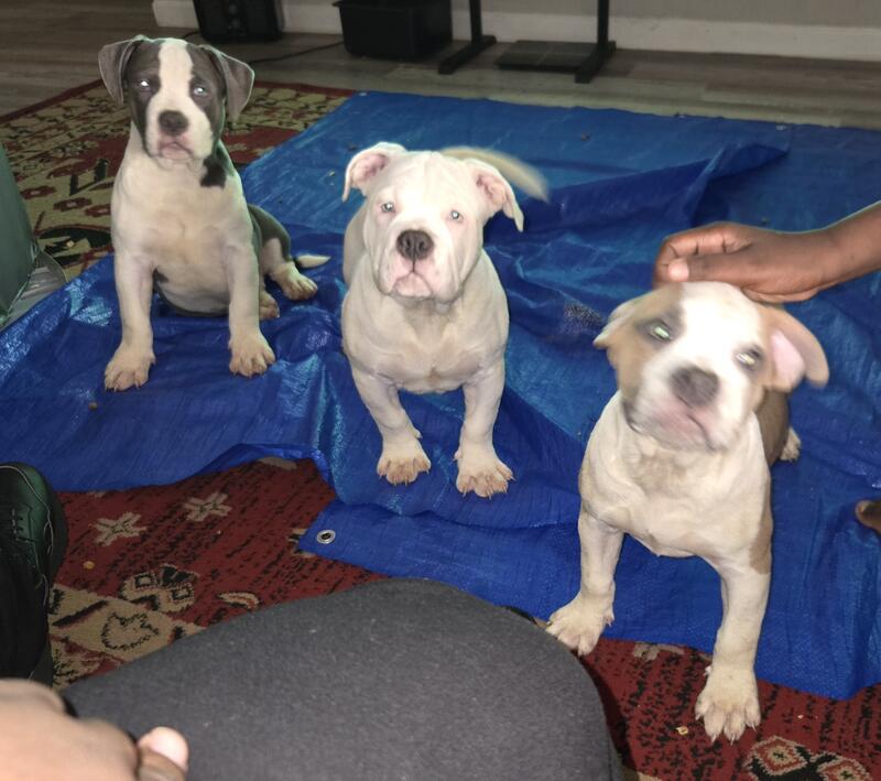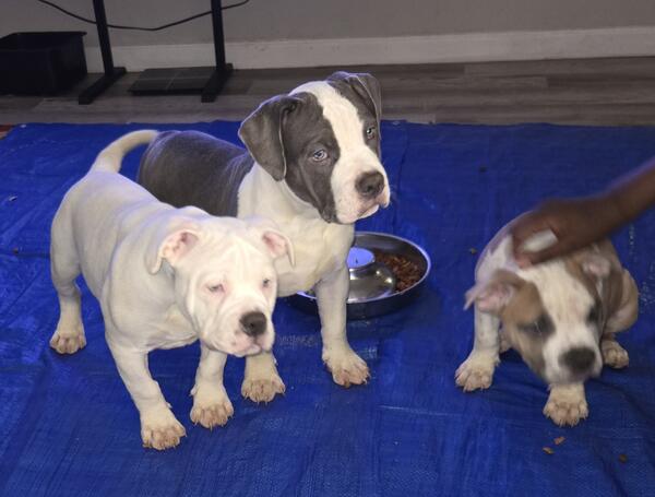 message txblb about this ad I have 3 American bully puppies for Sale 2 males 1 female she has a kink tail will do pet price for her shoot me an offer all pups are up to date on vaccines and dewormed comes with registration papers TEXT ONLY (832) 881 7243 |