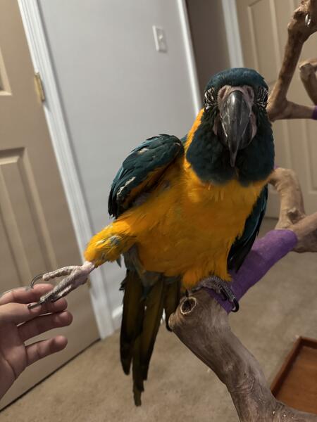 message rjtvail about this ad 4 year old male blue throat macaw, he's extremely tame with men, he does not like woman, he does not like other birds, he is extremely jealous and thinks he needs all the attention in the world. He's an escape artist, he can and does get out of his cage. He's an extremely well talker, he will do best with a man handler, I will not sell him to a home where his main caretaker is a woman. You will not be able to win him over I promise. 100% transparency! He's not a cheap bird so please talk to your significant other mom and dad whatever it is before contacting me. I appreciate it, thank you! |
