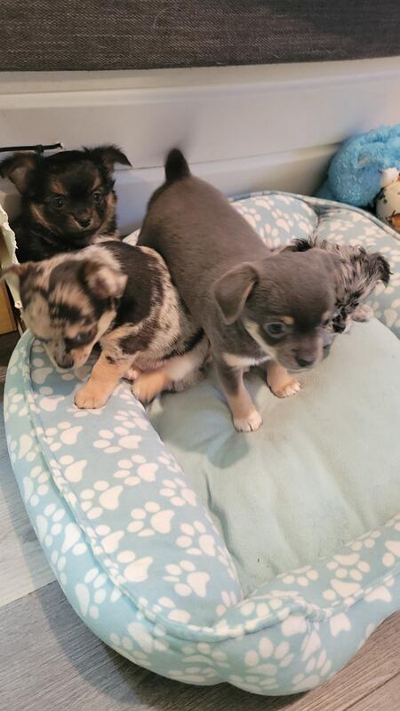 message donbon54 about this ad Blue is a short coat Chihuahua female. She will be breeding size as an adult & comes with full AKC. She has had two 5-way shots & will have her Wellness check on 1/7/26. She can leave for her new home after that. She eats Purina Puppy chow. She is pee pad trained on cloth washable pads. She has never been outside yet to pee as she is to young & it is cold to cold for a Chihuahua pup. She also comes with a bed , toys & sample of food. We are Bono's Chihuahuas LLC . We are in Zanesville Ohio & on Facebook. |
