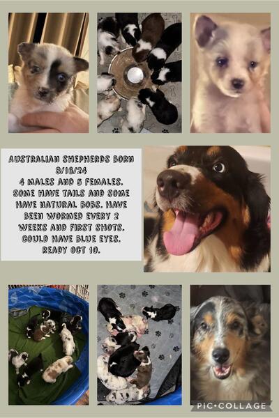 message jmmsm5488 about this ad I have Austallian Sheppard puppies looking for new homes. They have been around other animals and small children. They were born in August. If interested message me for more details. |