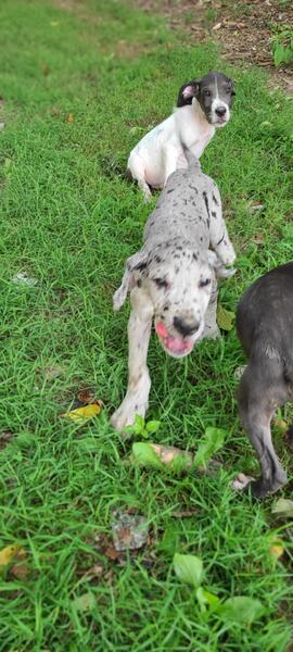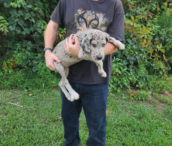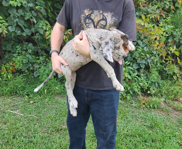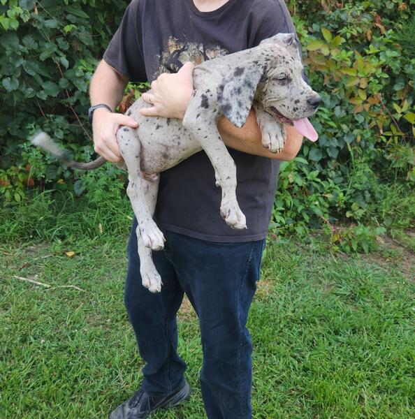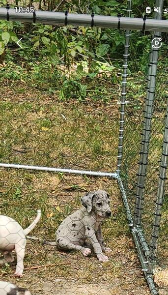 message steelcrossdanes about this ad Great dane solid merle male puppy. Sire is blue 75% Euro 175lbs. Dame is merle 50% Euro 125lbs. This boy has the sweetest personality. He loves to give kisses! Pups are de-wormed, first set of shots, vet checked, socialized with all animals and kids. DOB 5-2-2024 Ready to Go! Please call 434-851-4986. No text! |
