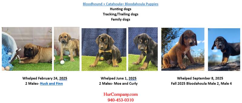 message hurcompany about this ad Hur Family Farm (HurCompany.com) is located in Cumby, Texas. 940. Four Five 3. o three 10 Bloodhound + Catahoula= Bloodahoula Puppies Hunting dogs Tracking dogs Whelped February 24, 2025 2 Males Whelped June 1, 2025 2 males Whelped September 8, 2025 4 males |