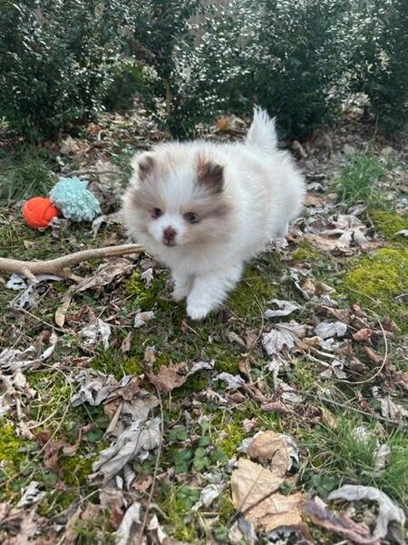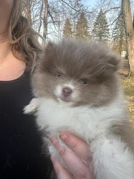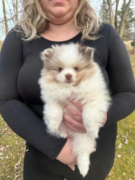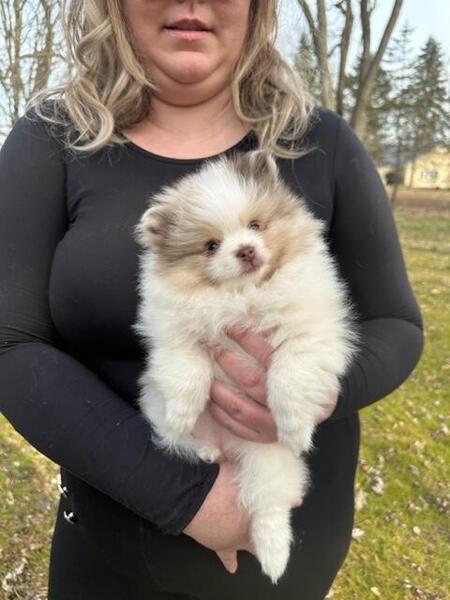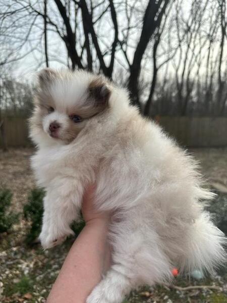 message ohiofeathersnfur about this ad I have 4 Pom Pups for sale Litter 1 Mother is an AKC 6.5lb Blue and White Parti with Tan Markings/Father is an AKC 4.5lb Chocolate and White Parti. Pup 1)8week old Irish marked Black Tri colored sister/female and is charting 5.5-6.5lbs at full maturity. She is drop-dead gorgeous and 100% symmetrically marked. Playful with an excellent temperament. $1500 Pet only or limited AKC rights $2000 with full AKC rights. Pup 2)8week old Irish marked, Blue and White Parti with Tan Markings brother/male. Hes the runt and charting 5lbs at full maturity. Hes cute as can be and loves to be cuddled. $1500 Pet only or limited AKC rights or $2000 with full AKC rights. Litter 2 Mother is AKC 6lb Chocolate Merle with a green eye and a Blue eye-Father is AKC 6.0lb Blue Tri Colored beautiful coated boy. Pup 3)9week old sister/female chocolate merle with blue eyes, charting 6-7lbs at full maturity. Her coat and temperament are awesome, she loves to play and be scratched behind her ears. $2300 Pet only or limited AKC rights or $2800 with full AKC rights. Pup 4)9 week old brother/male Lavender Tri colored Boy whom is charting 5-6lbs at full maturity. His coat is also Irish and his markings are totally symmetrical! Hes going to be a real head-turner! . $2300 Pet only or limited AKC rights or $2800 with full AKC rights. Pups have been Vet checked, wormed, and have had their first two vaccines and Bordetella (kennel cough vaccine Willing to travel a bit to meet. Please text me or call 440-796-8301 for more information and UTD pictures. message ohiofeathersnfur about this ad |