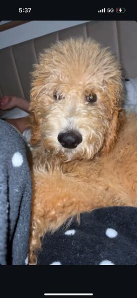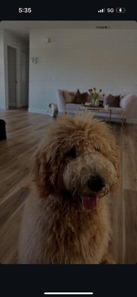message mspinkcutie about this ad Bliss is a one year old friendly Golden doodle who is CKC registered. He is XL size weighs about 60lbs He is healthy, gentle, friendly, very intelligent, and great with kids and animals. He does not shed and is very hypoallergenic as his mommy has severe allergies to dogs but with him I am able to cuddle with no issues. STUD services provided include bringing your dog to my home where she will stay for 2-3 days. This allows optimal results for breeding/mating. Fees are $300 flat rate or pick of the litter. willing to provide transportation at an extra charge |
