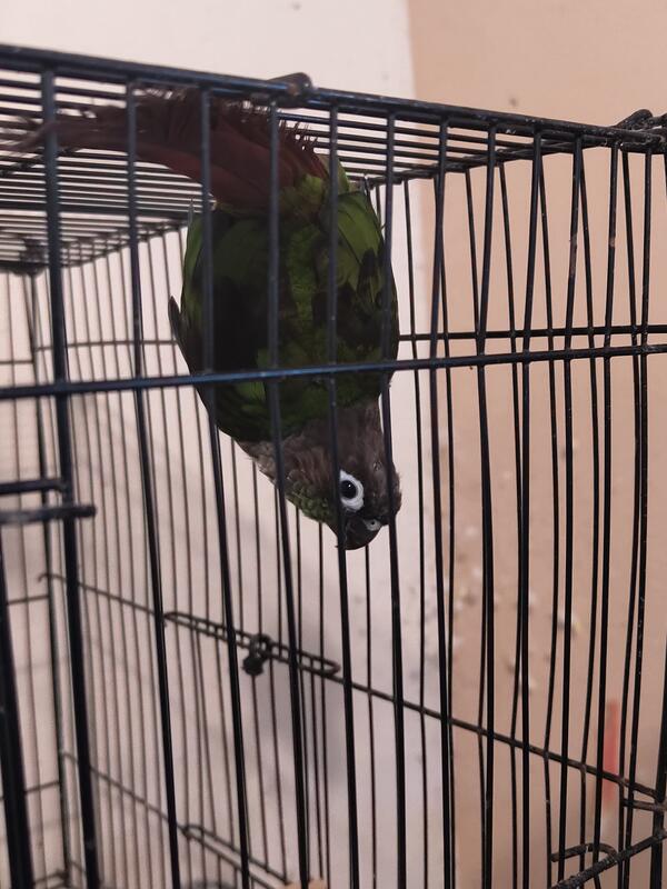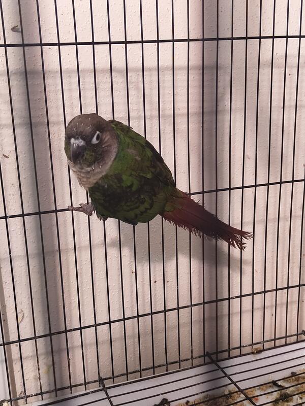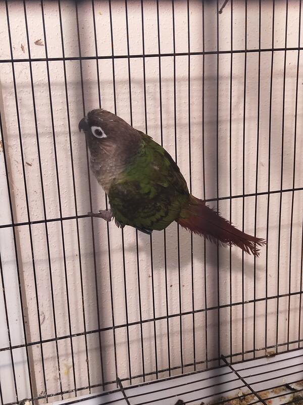 Young Green Cheek Conure weaned and tame. Cute we call me Bat bird. Local pickup only.
