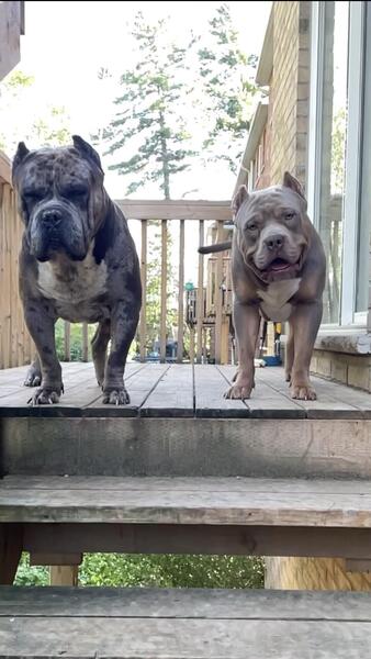 message sandy1984 about this ad Loki XL Blue Ghost Tri Merl Parents: Ivanka and stud Chop. From Lolo Bullies California. Temperament is great , social luvs kids family dog. He would definitely add to your blood lines. J.D. aka. Jack Daniels. Lilac Tri Parents : Notorious BIG and Angelina Daniels Both from Lolo Bullies, California. J.D. is a family dog and a joker likes to play and has an impressive lineage. Please call for information 705-606-4221 Loced out Bullies Sandra Price cash or puppy back negotiable |