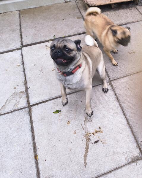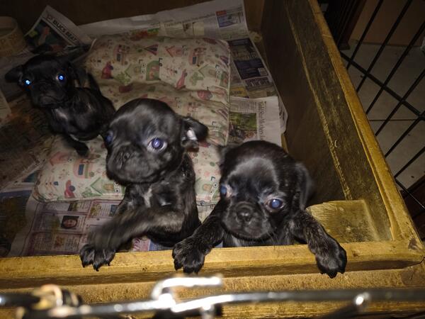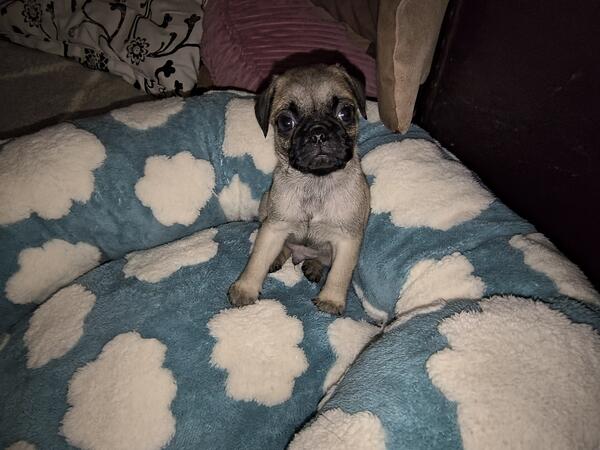 message puggirl61 about this ad Female brindle or fawn, Male fawn only. Daddy pictures is full blooded pug, Mommy dark brindle pictures, is 3/4 pug 1/4 frenchie, all look like pugs, with curl tags, born March 25th, 2025, Vet check, first shots wormed several times since birth. |