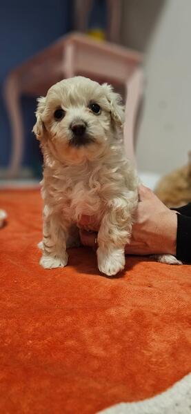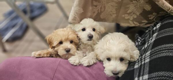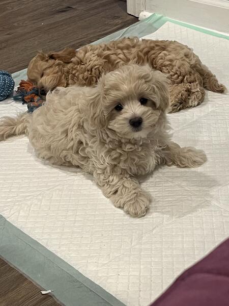 message welovepets2000 about this ad Breed: Maltipoo (Maltese Poodle) Gender: Male Age: 12 weeks Color: Cream Weight: Estimated to be around 1012 lbs full grown Vaccinations: Up to date (vet records will be provided) Health: Vet-checked, dewormed Temperament: Affectionate, extremely intelligent, hypoallergenic coat great for children, elders and apartments! Parents: Snowflake Maltese first litter (mom) Muffy Toy Poodle (dad) brown, second healthy litter What's Included: Health Certificate Starter Puppy Kit (food, toys, blanket) 10-Year Health Guarantee Education and Support for succesful Transition of Puppy We we pad trained puppy, leash, driving in the car, personal hygiene Satisfaction 100 % guaranteed About Him: Hes a friendly, outgoing little guy who loves to snuggle and follow you around! He's already working on basic commands and using wee pads, lease training. Knows not to wake up people in the morning. Very socialized with kids and other pets. Location: North Jersey Local pickup available. Delivery options can be discussed for serious buyers. Price: 1200 + $400 Vet Costs, shots (Deposit required to hold800 Marta Contact Info: ladynursepl83@gmail.com The cream puppies are for sale. One of them is sitting the other one is lying down. Brown poodle is a daddy. White dog on the left in mommy, and to the right grandma. message welovepets2000 about this ad |