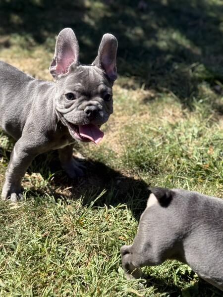 Male and female blue AKC registered 10 week old French bulldog puppies. Call 2722039688