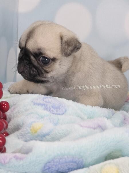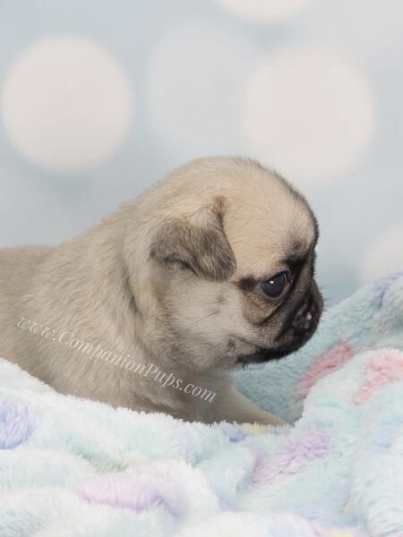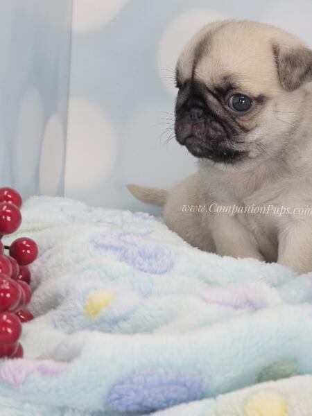 message companionpups about this ad See video on our wesbite as pictures do not do him justice. www.CompanionPups.com Meet your new adorable little Pug boy a bundle of fun and laughter! This pup is super silly and playful, always the life of the party. Hes a total hoot to watch as he bounces around and plays with his siblings and bringing smiles to everyone who sees him. He is a silver fawn from Imported Champion and USA Champion Lines! He is up to date on vaccines, vet checked, comes with a puppy goodie bag and folder with records and information. He was raised with young children cuddling on him and ENS raised. He is an excellent addition to your family! See details or to contact us please check out our website: www.CompanionPups.com |