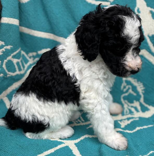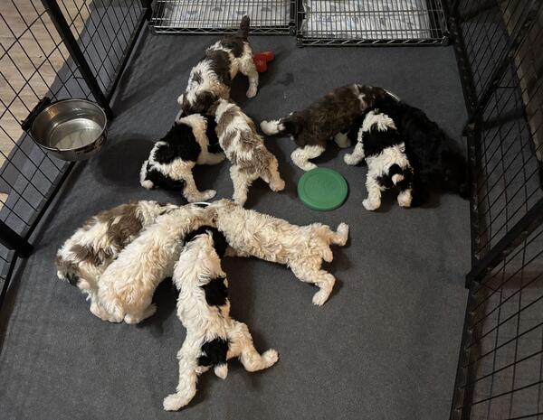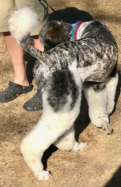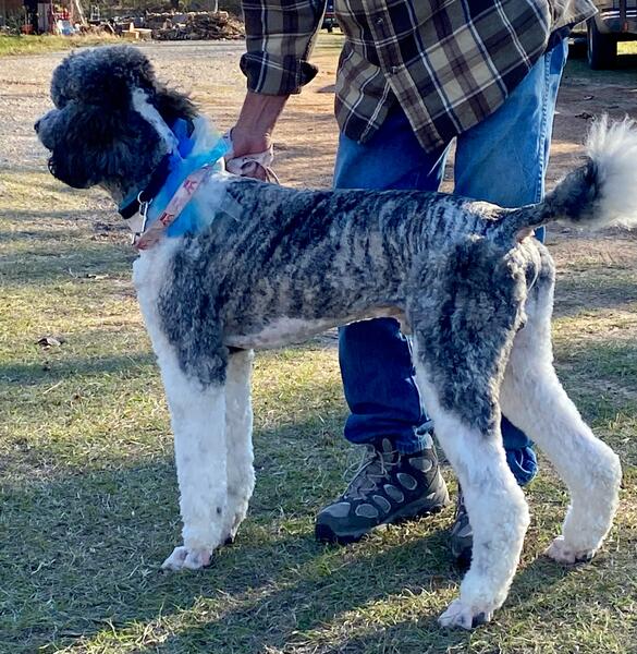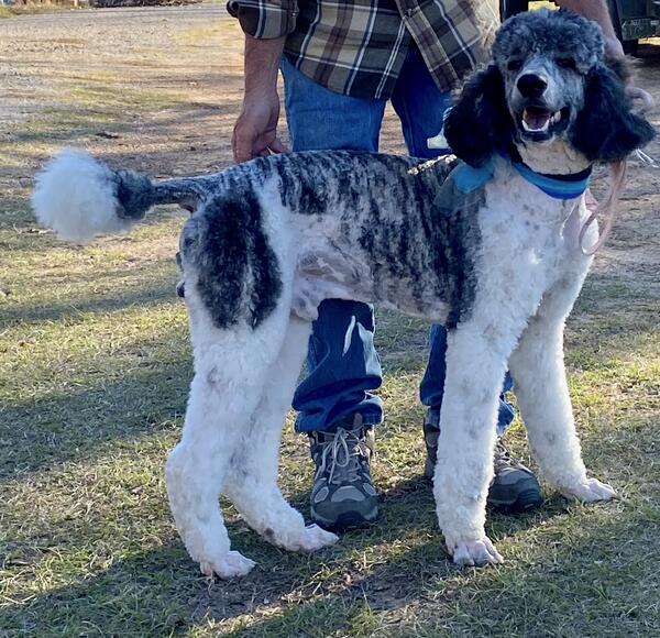 message mctxgr2748 about this ad AKC female black parti standard poodle. Oreo is a very sweet and playful girl. Mom is an AKC abstract merle and dad is an AKC parti brindle. Both parents are Embark tested. UTD on shots, wormer, dewclaws removed and tail docked. Please message for videos/facetime. |