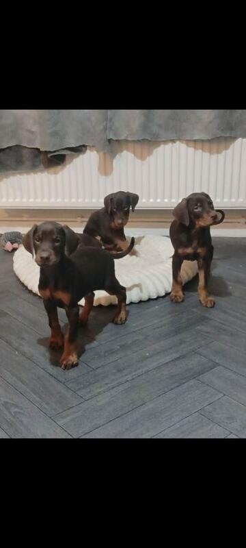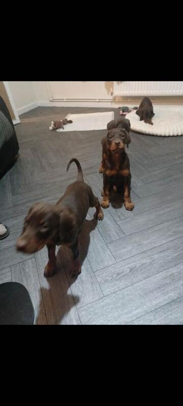 message aamanda3938 about this ad I have 4 beautiful chocolate tan Doberman puppies looking for there forever homes Puppies have been raised in a family environment with diffrent noises Mum did extremely well with her puppy's Males and females available Puppies have had there fists vaccination microchipped vet checked fleas wormed upto date by the vet. Puppys will leave with puppy pack including food toy blanket with mum's scent on etc. Any questions please ask me on WhatsApp only @ +1365-893-9830 or E-mail @ [email protected] |