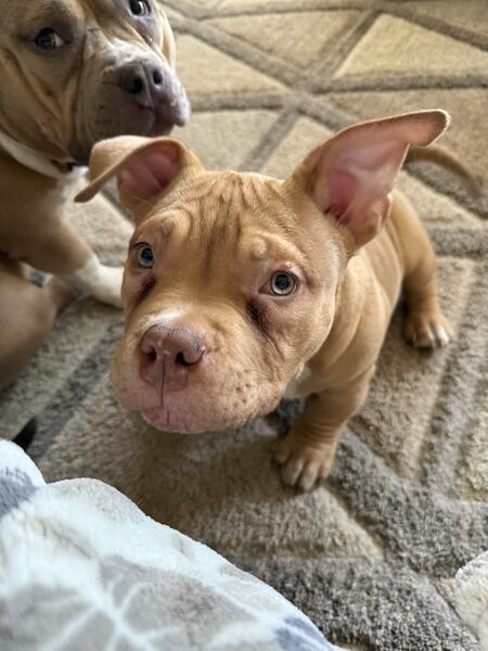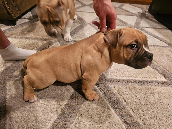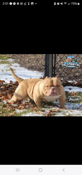 message klmbg1220 about this ad Grand champion bloodline. (GRCH) R2G2 x (GRCH) Brimm x (GRCH) Boulder ABKC registered. Papers in hand. Pictures posted include Mom and Dad. |