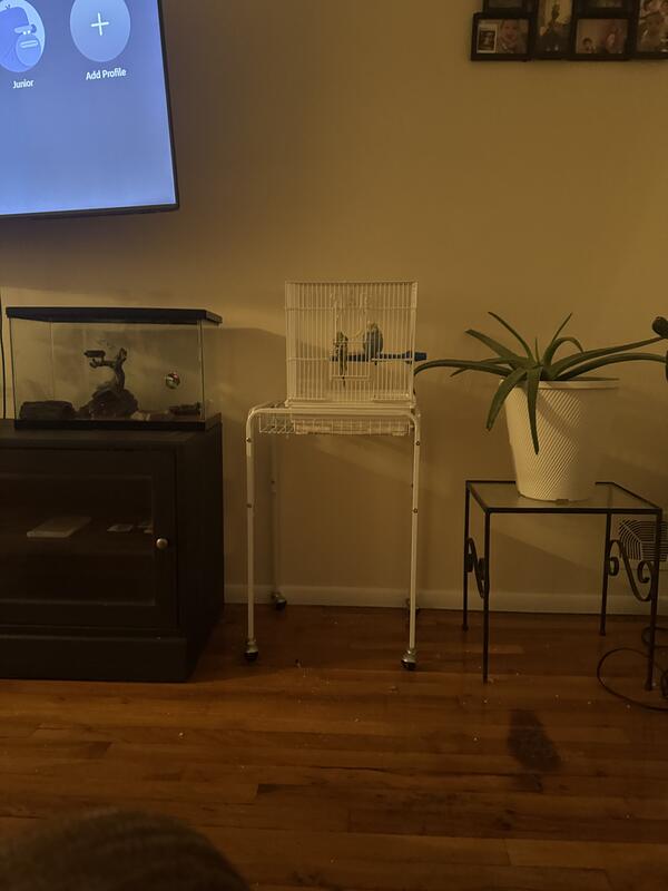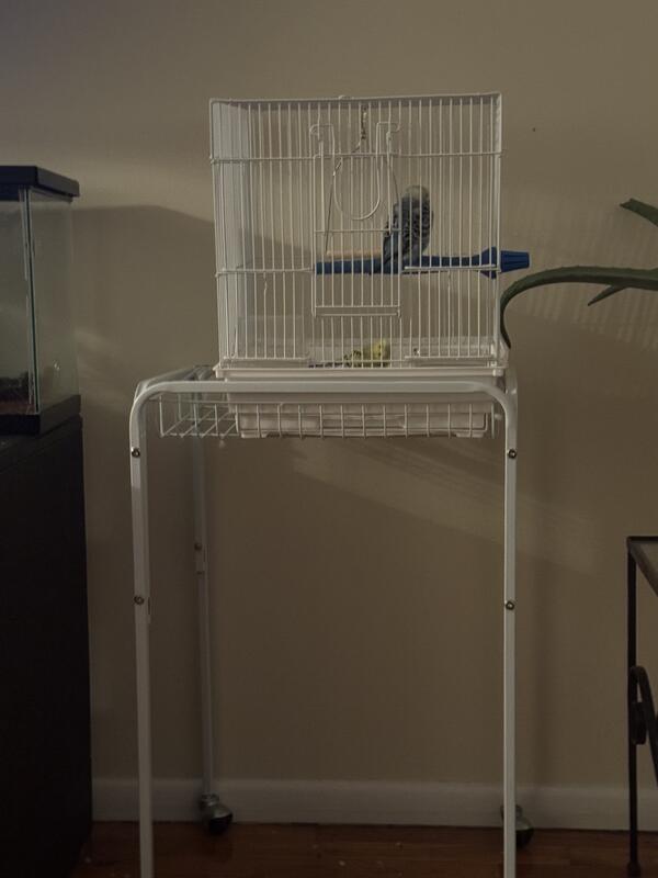 message crissyvaz about this ad Two parakeets for free green and blue friendly with people and each other you can take the whole set up located in Staten Island |