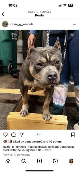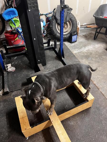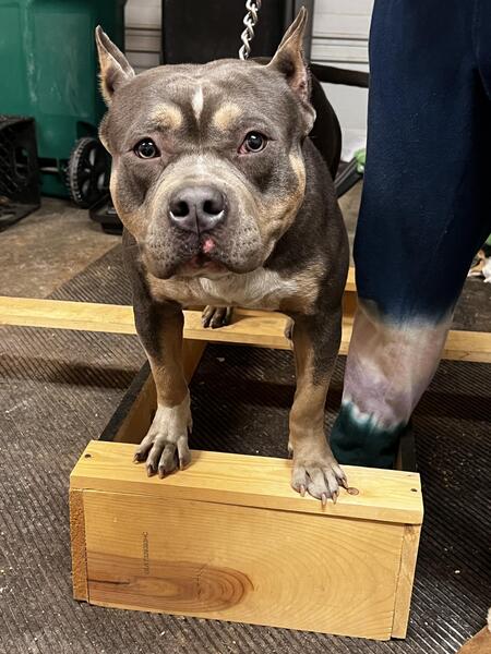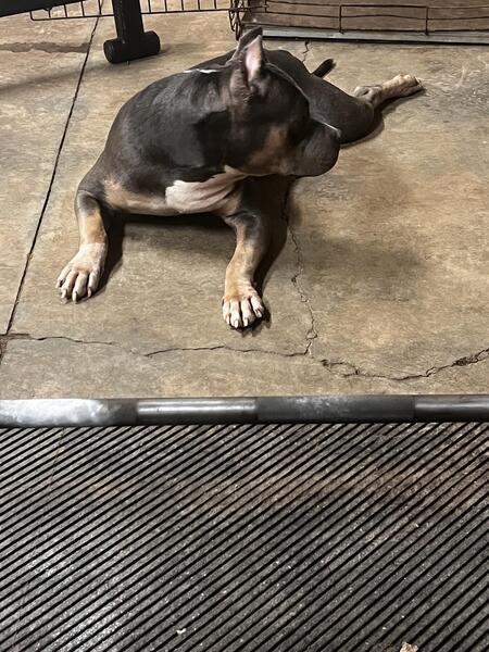 message mcknzf7109 about this ad 2 year old Male American bully. Blue tri color. Ukc registered. Does well with other dogs. Been raised around children. Would be considered standard size. Has had basic obedience training but needs daily practice. Is housed inside in a crate. Comes from a line of working dogs so he has drive. |