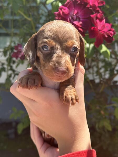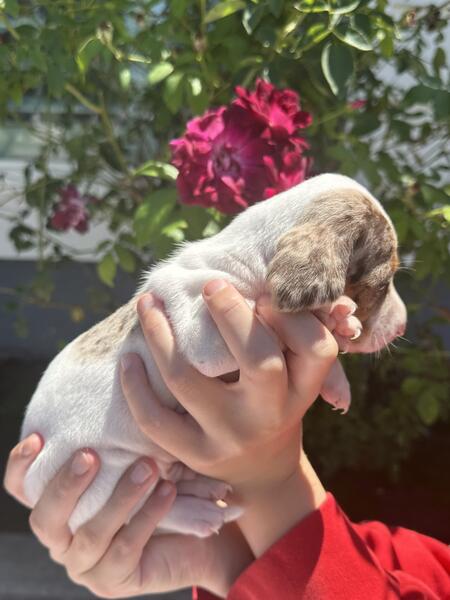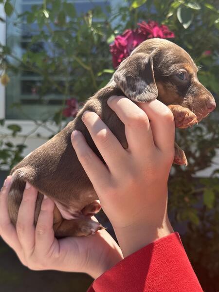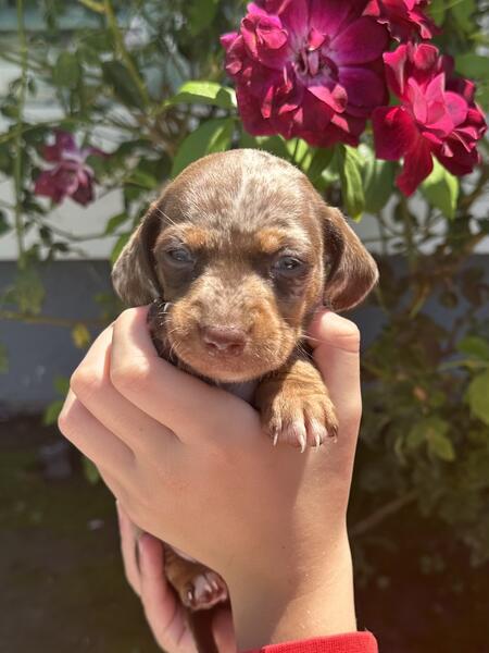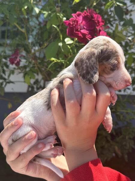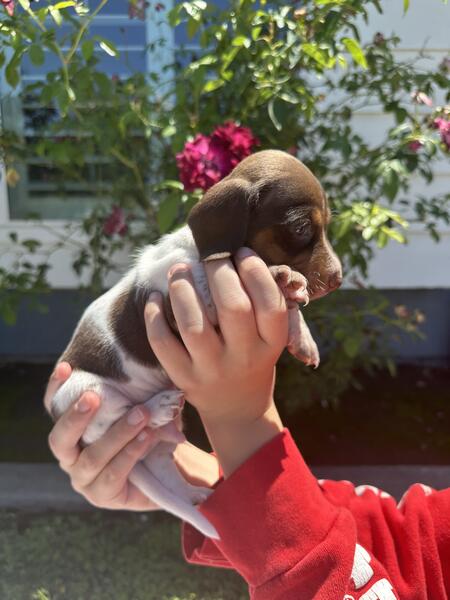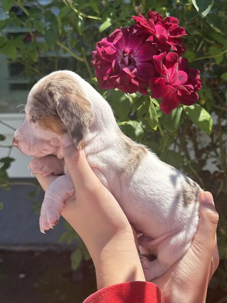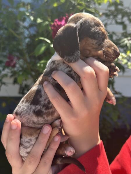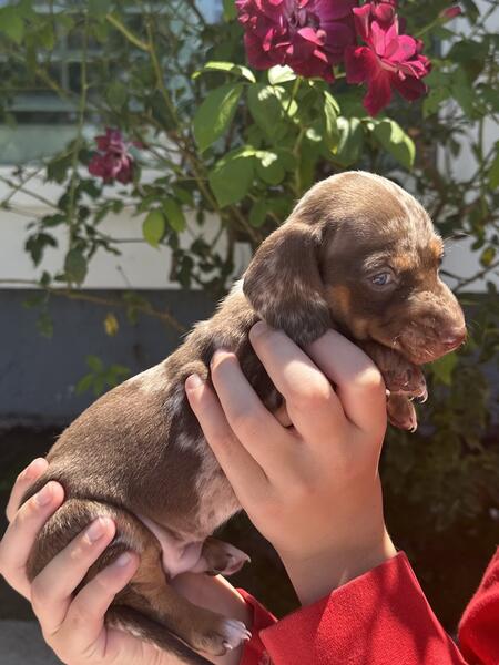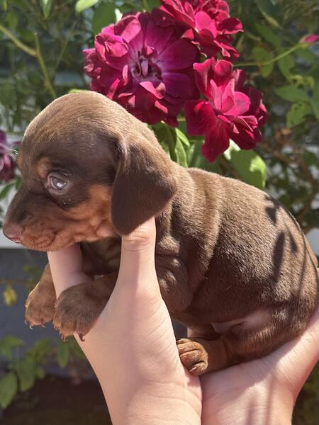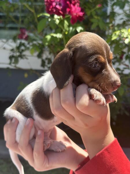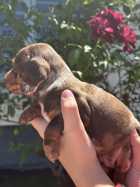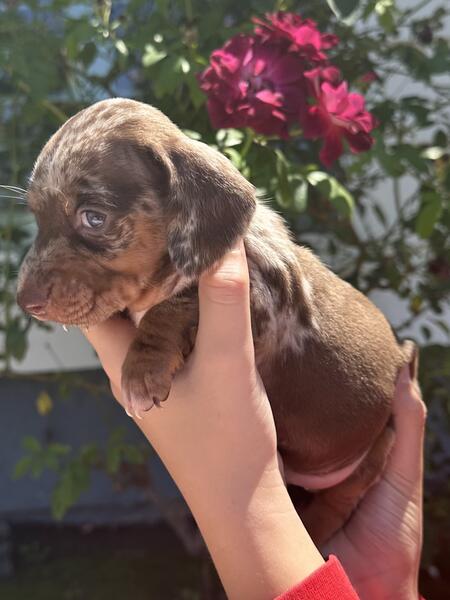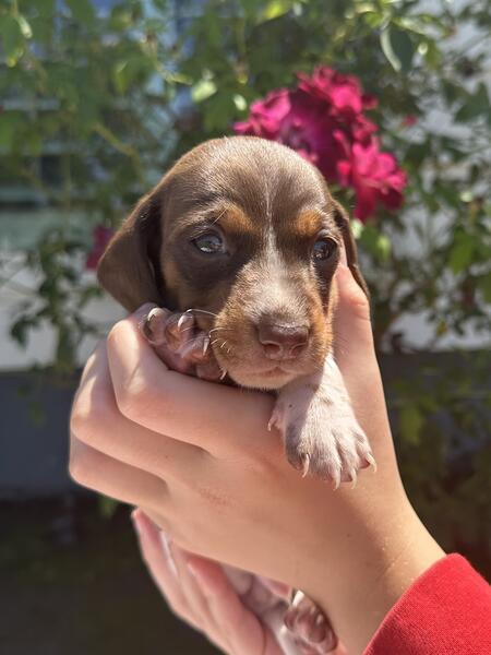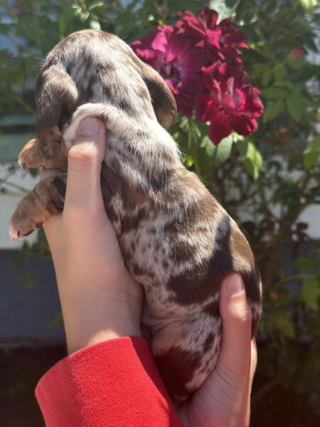 message vanessah12 about this ad These beautiful babies were born on 6/30/25, piebald and dapple are all male, one chocolate female. Ready for their new homes 8/25/2025. Will be started on vaccines and dewormed. Will be started on potty training, socialization, and desensitization. Starting at $2300 |