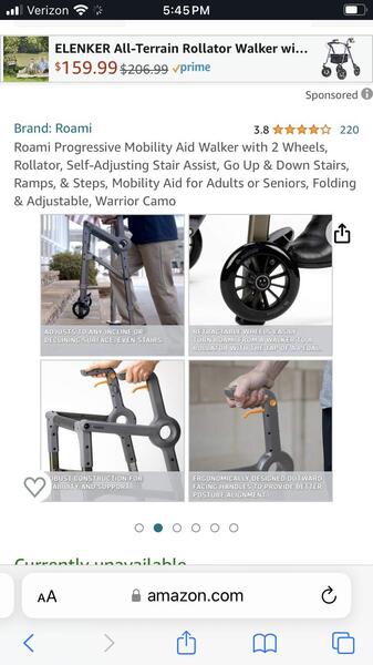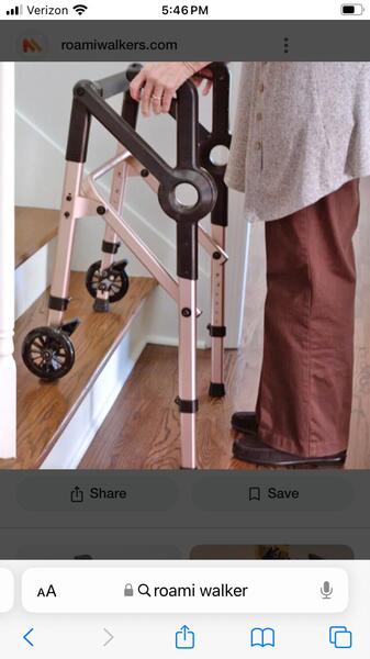 message peepsnpaws1 about this ad The Roami progressive mobility aid is multifunctional as it can transition from a walker, into a wheeled walker, be a step assist and a gait alignment aid in one. Roami uniquely adjusts as you progress in your rehabilitation from sit-to-stand, to walking, to conquering bigger challenges like steps and uneven surfaces. Roamis distinctive gait alignment function adjusts the angle of the walking frame for posture position correction and balance. When the optional wheel assembly (sold separately) is purchased, Roami progresses from a traditional walker to a wheeled walker with a quick press of the foot pedal found on the retractable front wheels. When ready to take your mobility even further, the unique, patent-pending Cam Lok allows the front legs to adjust up or down, lock into place, and conquer steps, slopes, curbs, and thresholds. Roami helps you live life without limitations! |
