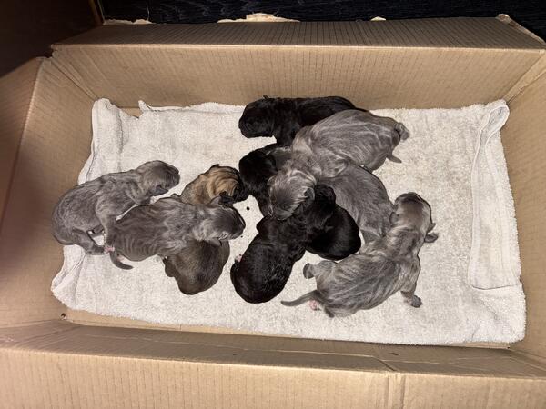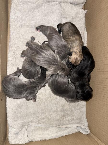 message rchgml9747 about this ad 9 puppies available born November 20th 2025 5 greys 3 blacks 1 fawn 5 boys 4 girls Hello, my name is Richy and Im an Army Combat Veteran who has been breeding cane corsos since 2019. Why choose one of my puppies? Well lets start by saying your not paying for just any cane corso. My puppies are going to turn heads and will be very social. Mom is ICCF formentino that I produced 3 years ago and dad is dual registered ICCF & AKC solid black I added to my program. Puppies will have dew claw removed and tail docked. Please text me or call me with any questions and to get in the list. All puppies will be pet only unless we work something out. Thanks for viewing my ad |