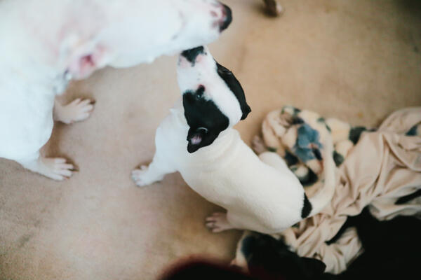 message dnfth3765 about this ad 2 Puppies available southwest MI. Fully vaccinated and health tested. Born Nov. 21st 2024. All white with black patches on eyes - Cupid Black and white cow - Moo |