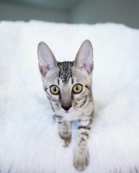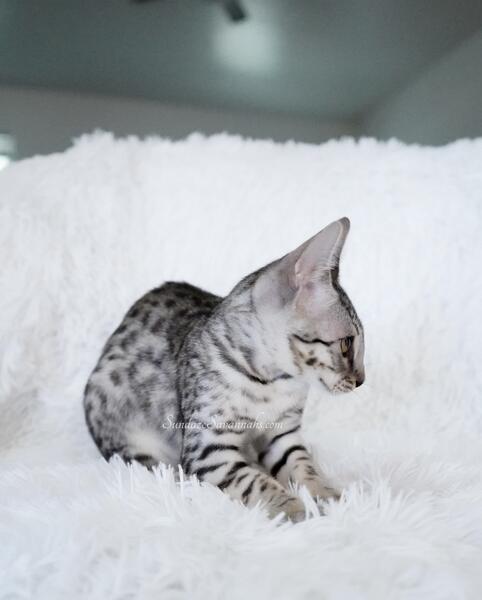 message sundazesavannahs about this ad READY FOR HER NEW HOME. special reduced pricing and FREE delivery. TICA registeredStunning silver- uncommon colour. Black nose and high contrast coat. Nori is a very sweet girl who has that classic savannah personality. 2399400331 call or text. Alternatively visit Sundazesavannahs.com Raised by the TICA code of ethics Included: veterinary health certificate, TICA registration, microchip, spay, fiv/felv negative, kitten care package, lifetime breeder support, core kitten vaccines. |