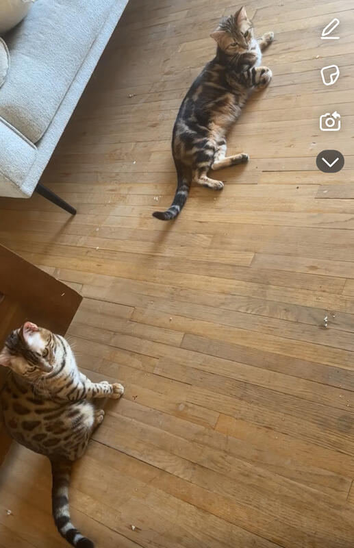 4 week old kittens 3 marble 1 spotted . 2 males 2 females