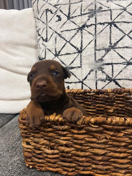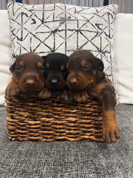 message dobiemom92 about this ad These puppies are of FULL European lineage they will be stockier have much thicker muzzles and be larger all around. Black/rust and Red/rust available! Parents are health tested. All our dogs are socialized with children and small animals. Puppies come with AKC registration,Tails docked ,Pups will come home with first set of shots and health certificates. Choice of ear cropping also available.They will have an exceptional pedigree as our male has imported European championship bloodlines as does our directly imported European female, parents are large-boned with excellent structure, temperament, and drive. These puppies are well-suited for family homes or active working families. Now taking reservations. |
