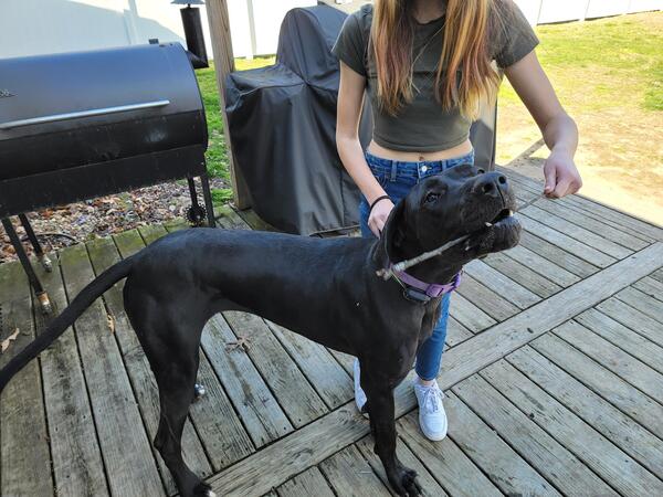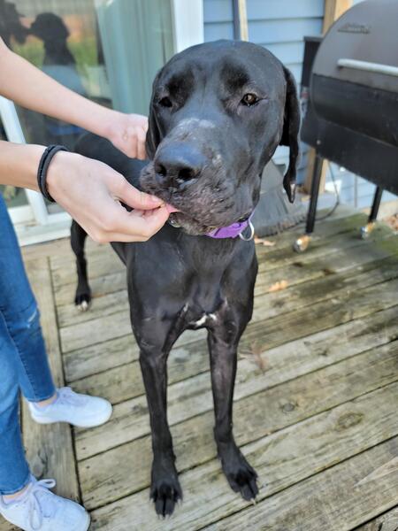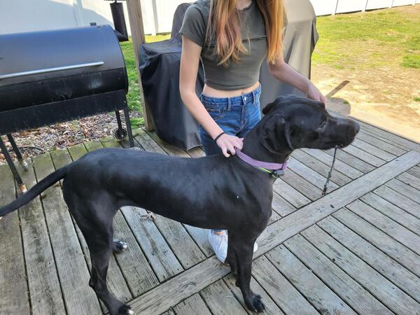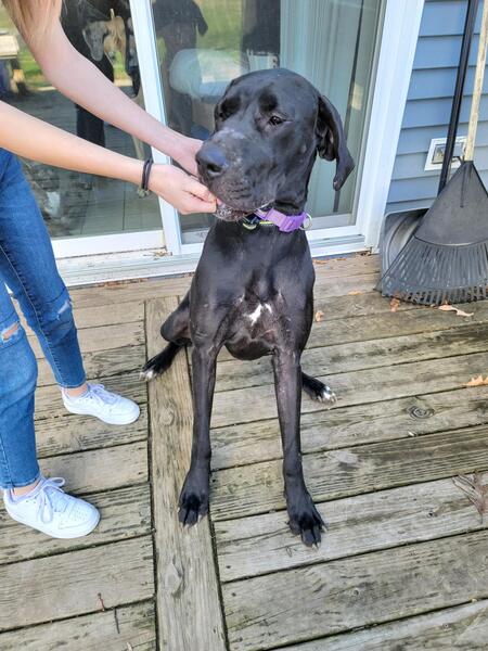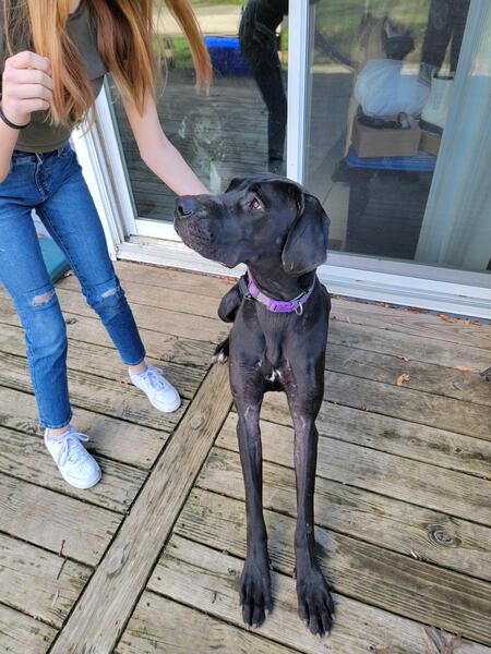message monkeygirl143 about this ad Need to rehome our 1 1/2 year old microchiped fixed female black great dane. She is a very loving dog who also thinks shes a lap dog. She is potty trained and crate trained and is great with kids. She MUST be the only pet in the house as she gets jealous and doesnt get along with other animals. Their will be a rehoming fee just to make sure she goes to a good home. Will include crate, food bowl and leash. Needed a yard to run in as she is still a puppy and still had lots of energy to burn. Weights about 135 lbs. |