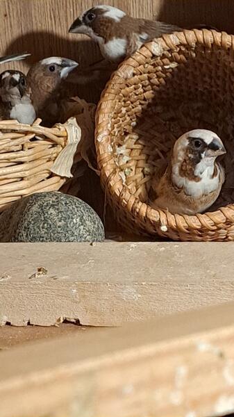 A couple of society finches are finding a new home. Some are pairs and some are individual ones. $30 each.