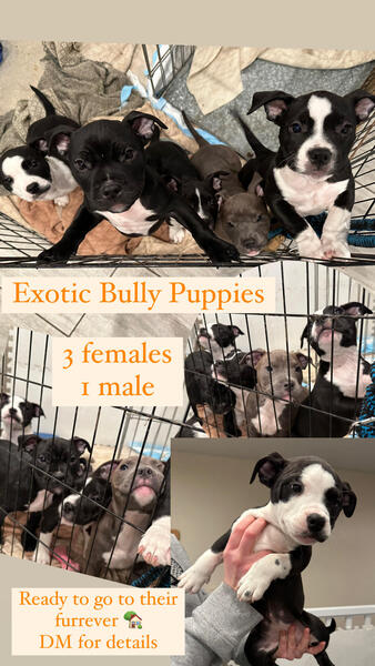 message ccexotic about this ad 3 females 1 male left Amazing micro bully puppies looking for their furrever homes! Dad is a nano mom is pocket. These puppies have beautiful structure and face. Puppies come with vaccinations and deworming. Potty training currently. Call or text for more info 6139177180 |